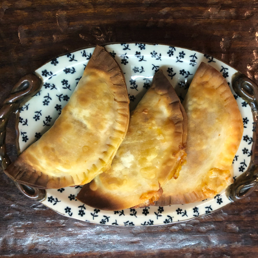 一口サイズでコロンと可愛く、ギョーザっぽく見せないようにフォークで閉じているのも洋風に見えてgood。